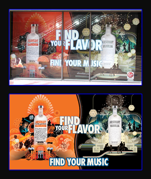 This display was part of an Absolute Vodka national campaign promoting their flavored product lines. The window was in Virgin Megastore on Sunset Boulevard.