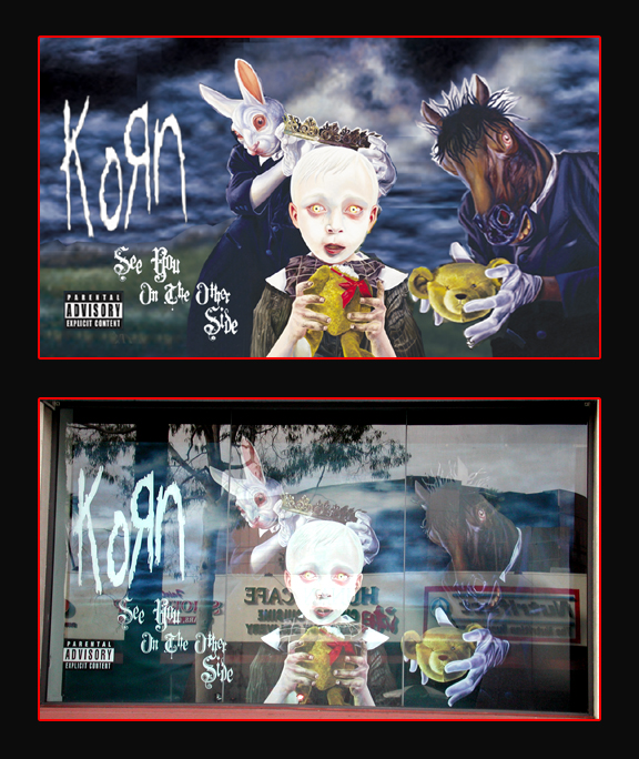 Korn window display on Sunset Boulevard: 8′ x 16′